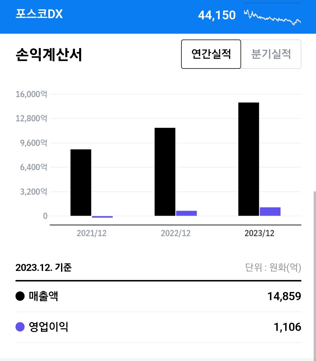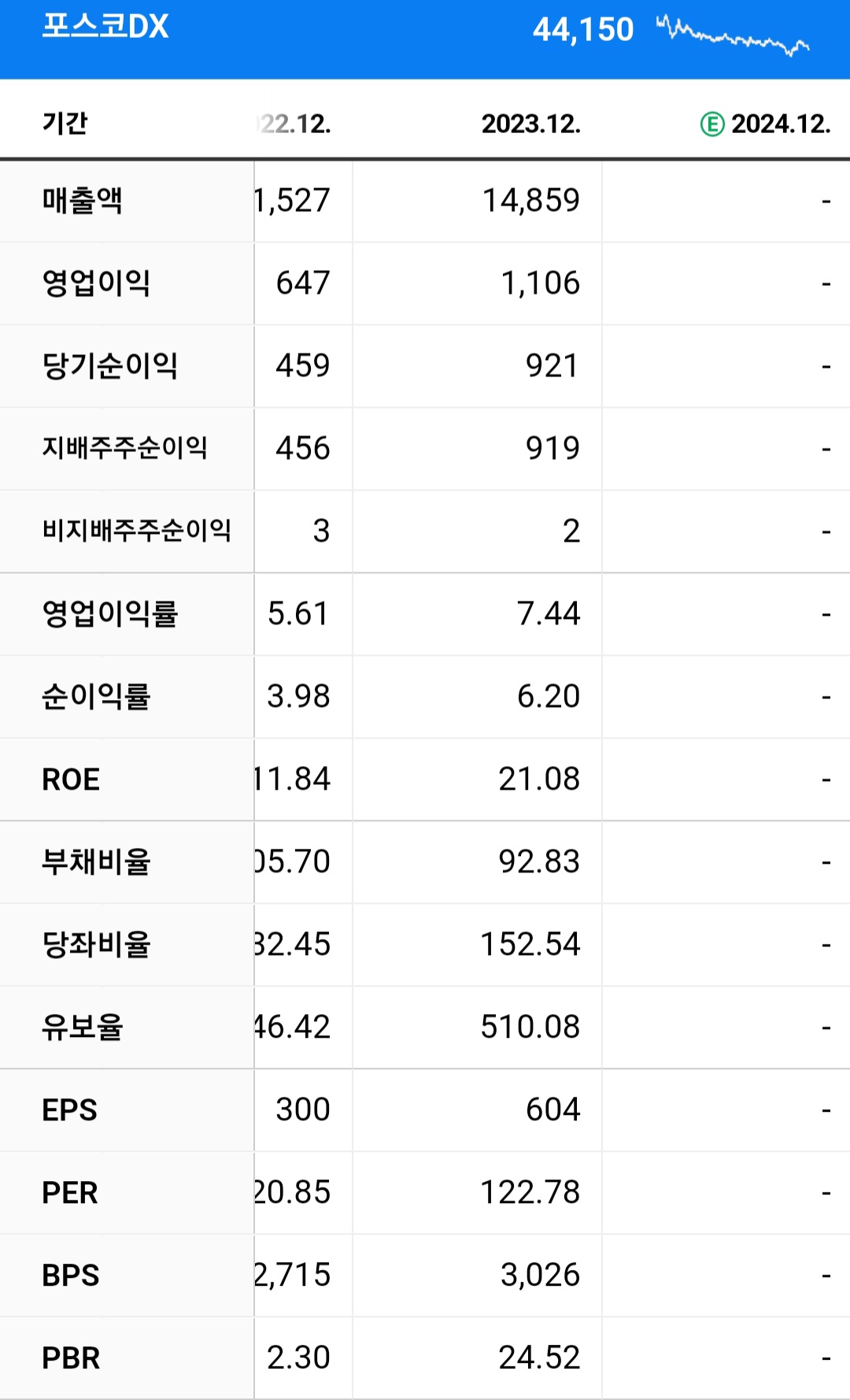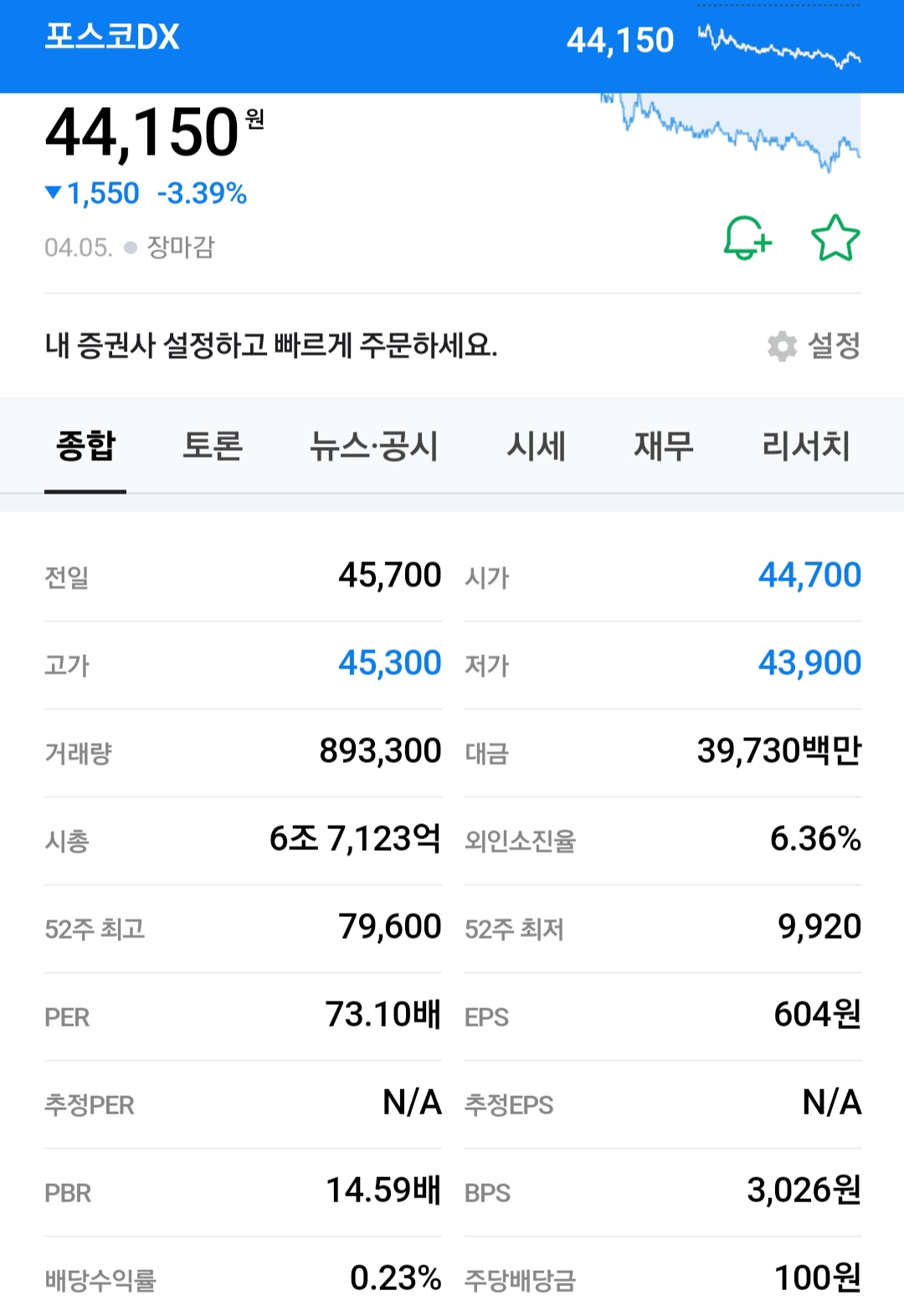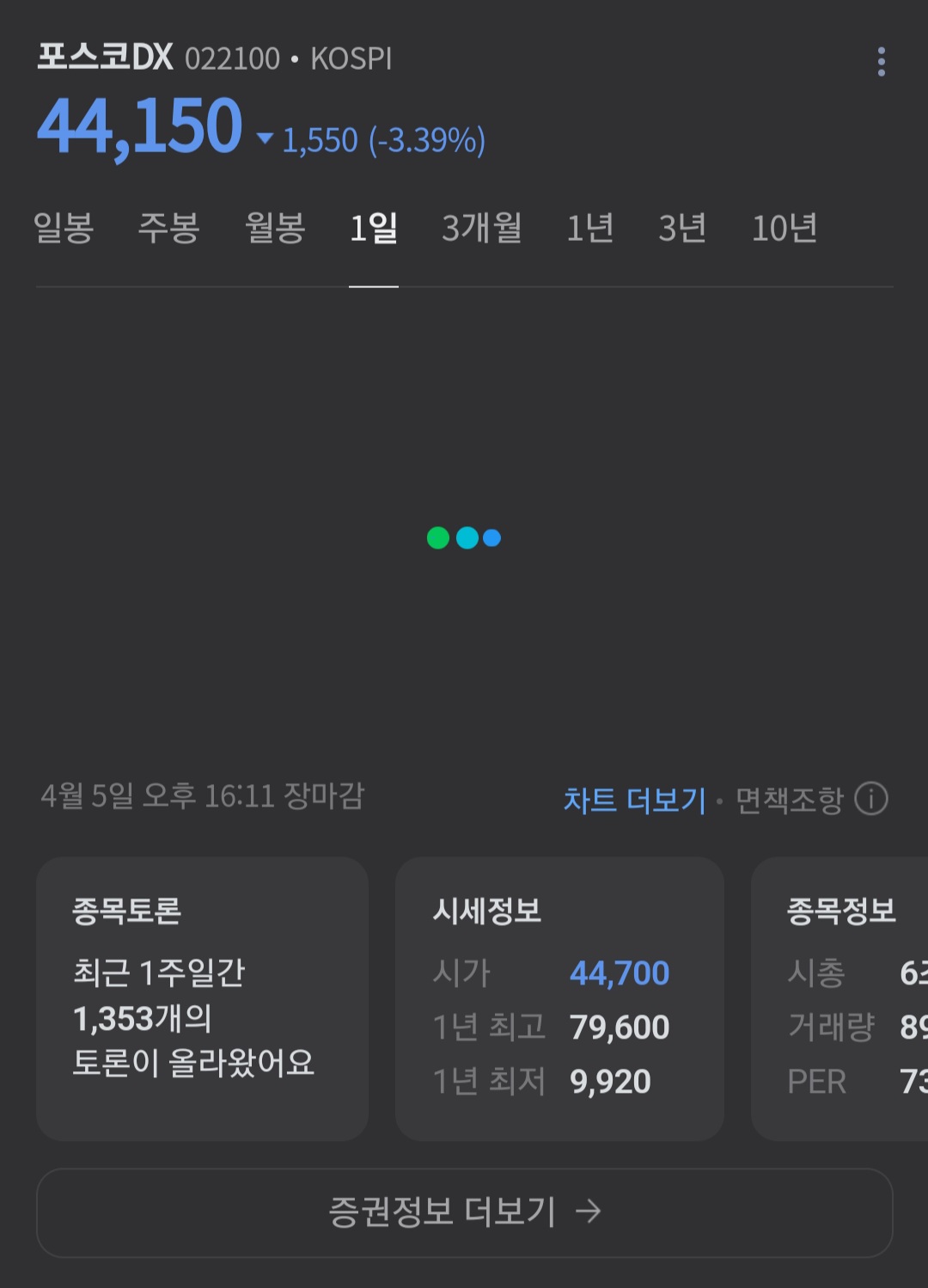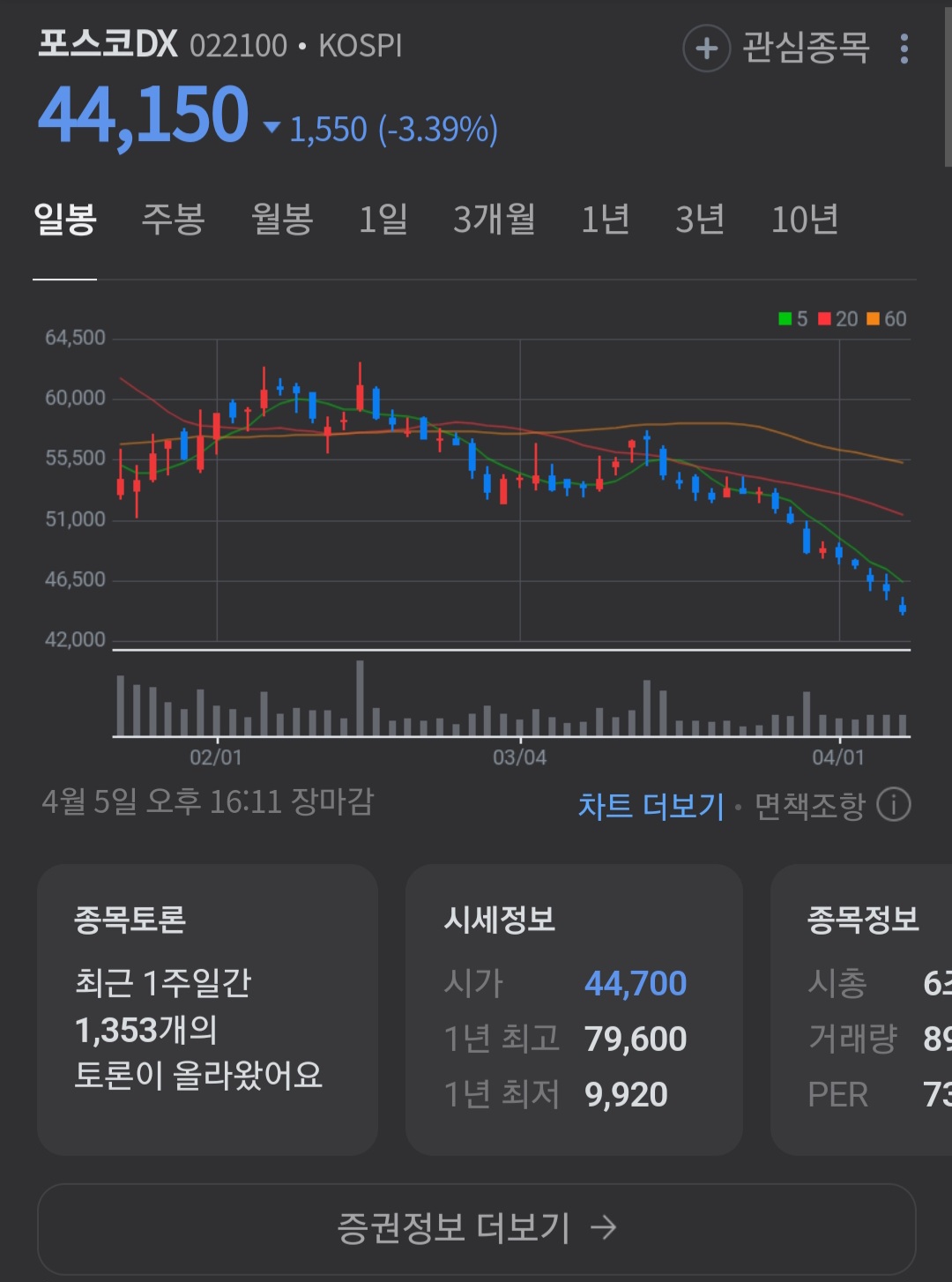 현재 포스코 DX 주간 4만 4000원입니다.