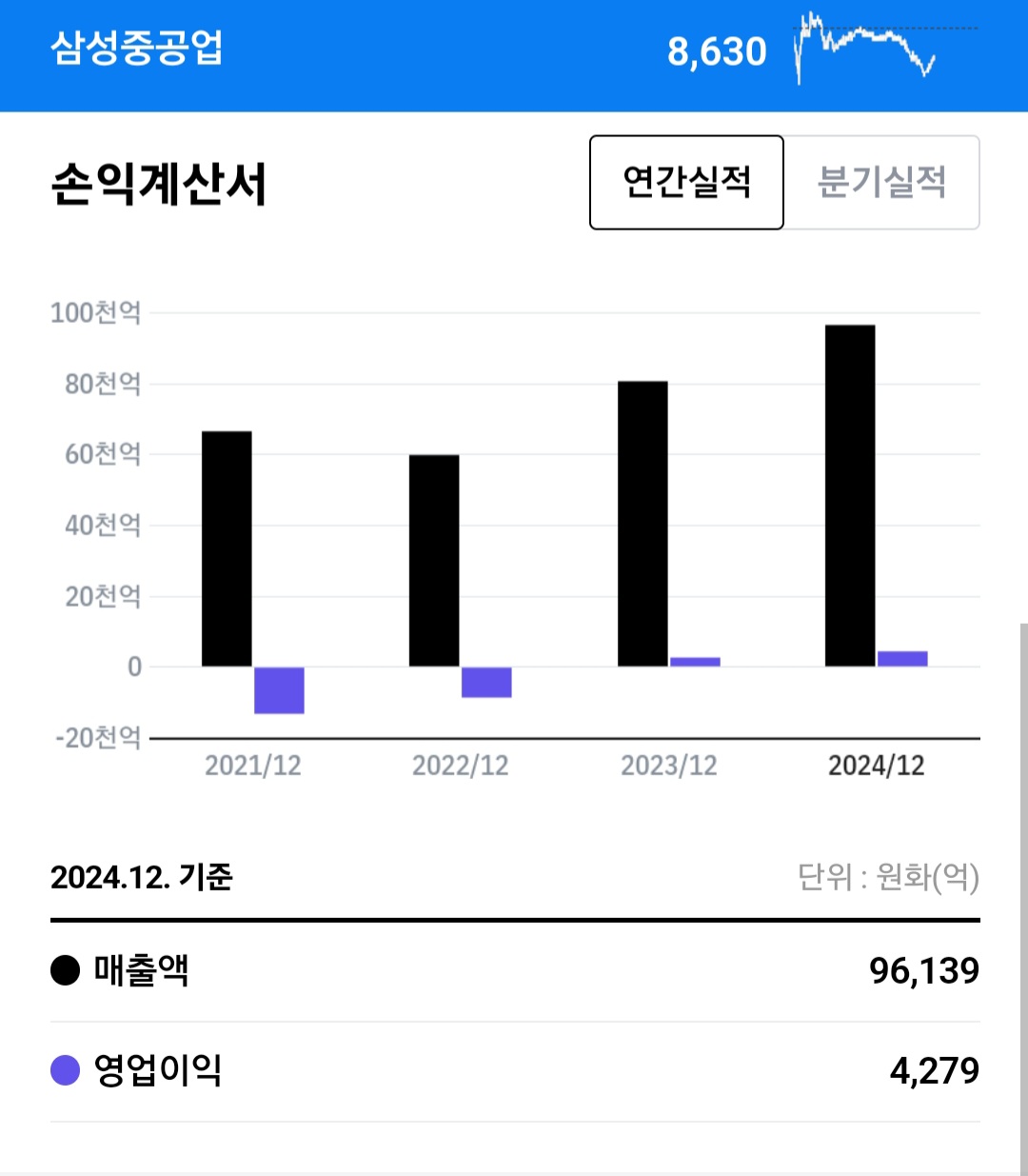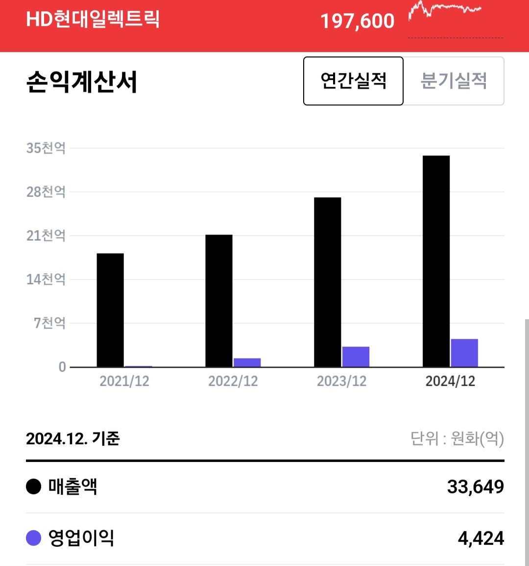 현재 일조 원의 매출을 내고 있으며 상승하고 있는 걸로 보입니다.