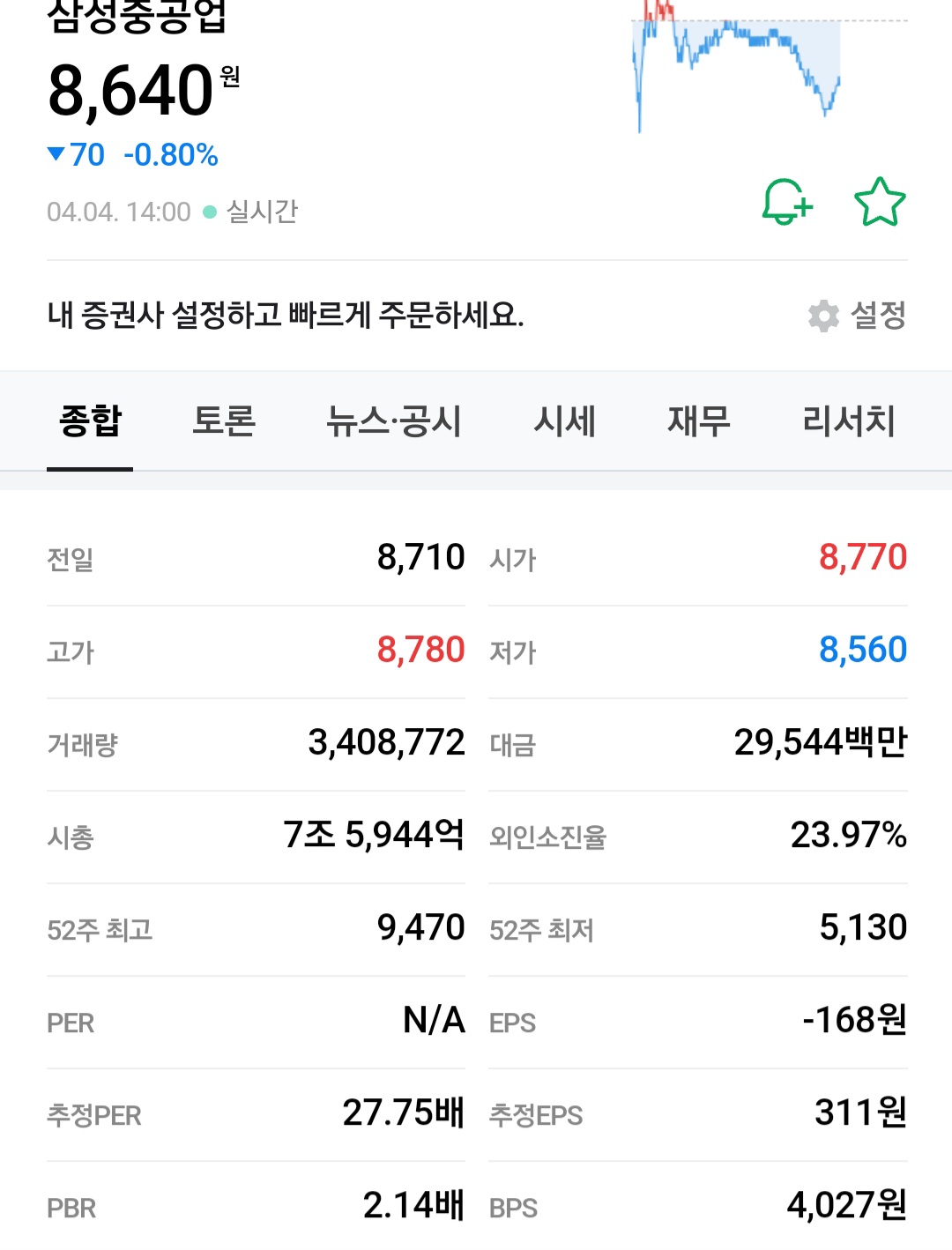 투자 의견은 중립을 유지하고 있고 목표주가 같은 경우는 4만원을 보고 있는 것 같습니다.