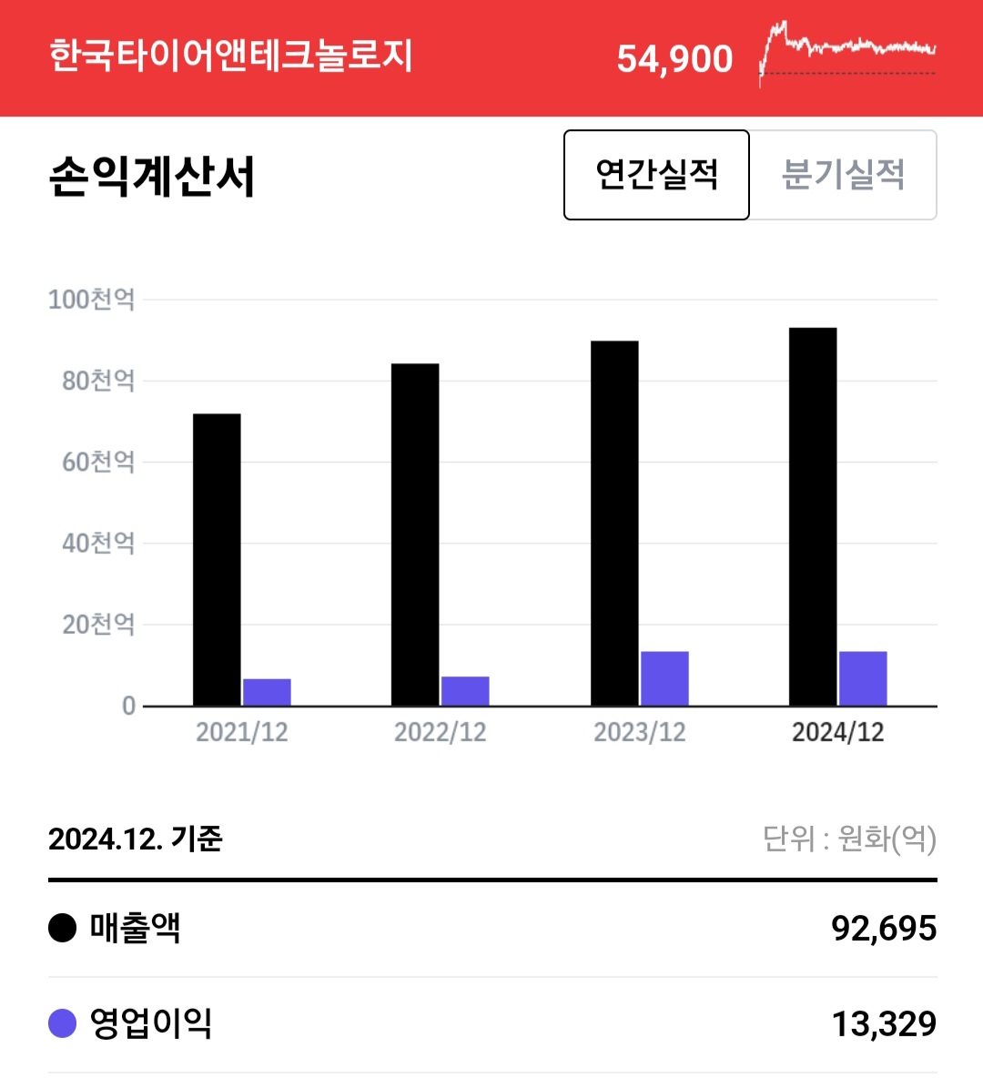 현재 1조 원의 매출을 내고 있으며 상승하고 있는 걸로 보입니다.