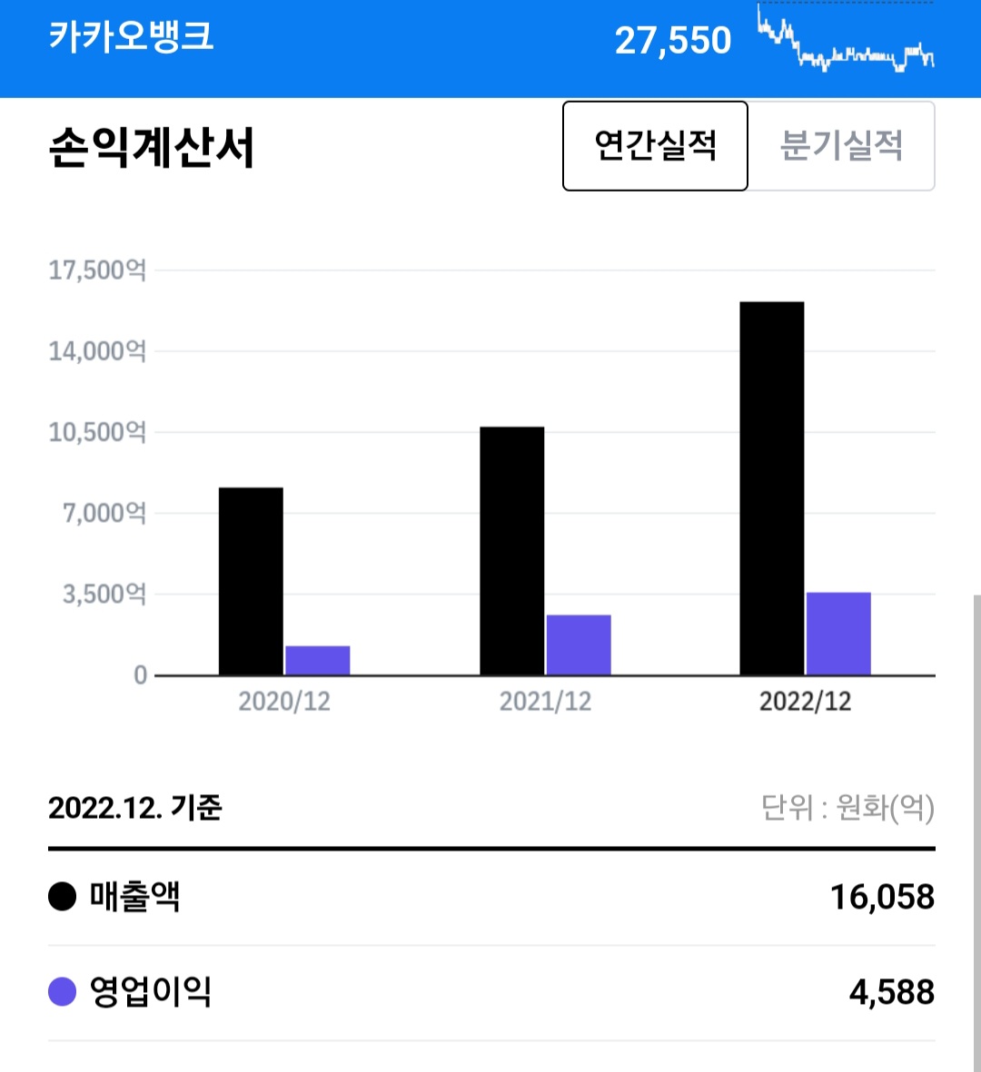 영업이익은 8280억 원 정도를 보이고 있는 주식입니다.