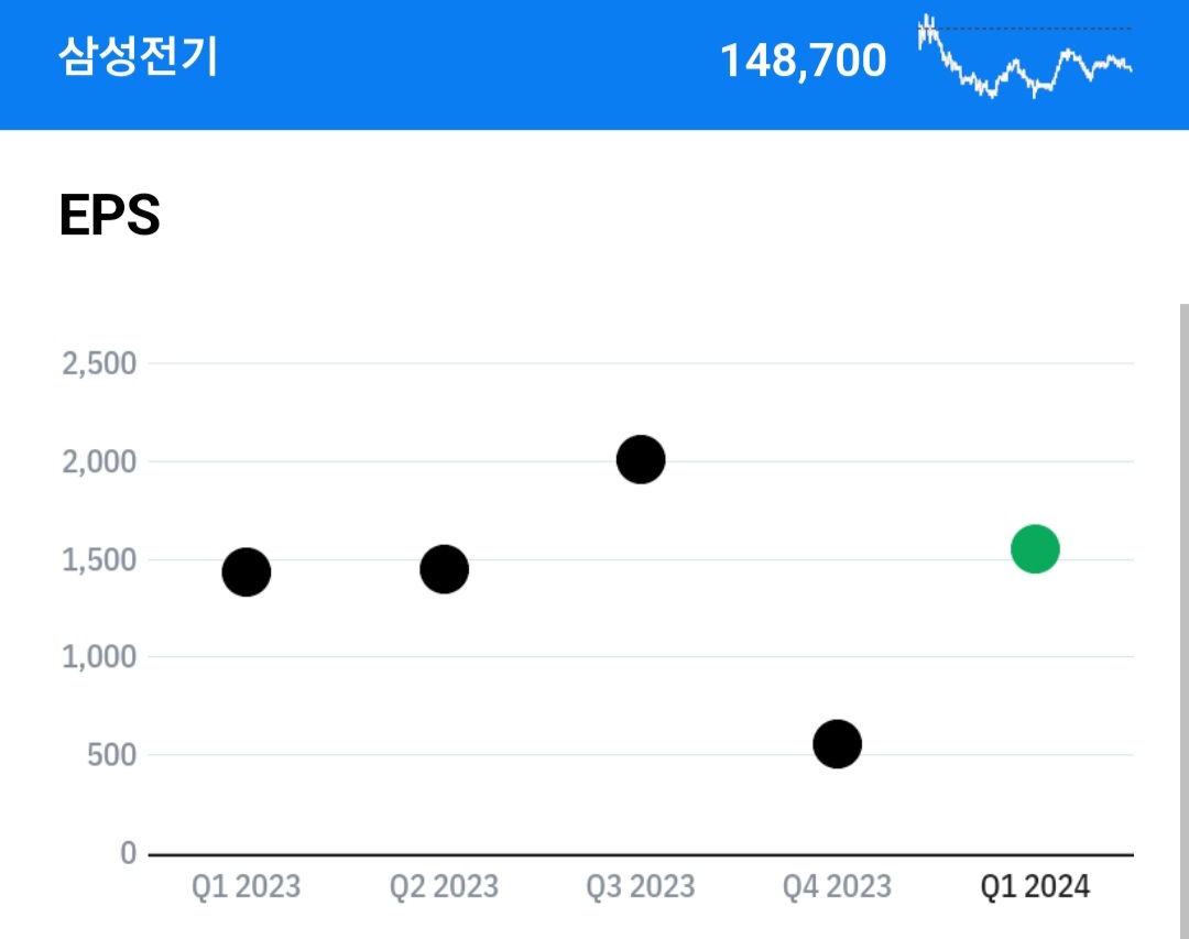 2024년 1분기의 컨센서스는 거의 한 1600억 원 정도인데 현재 시장 평균의 컨센서스를 한참 상회하는 것 같습니다.