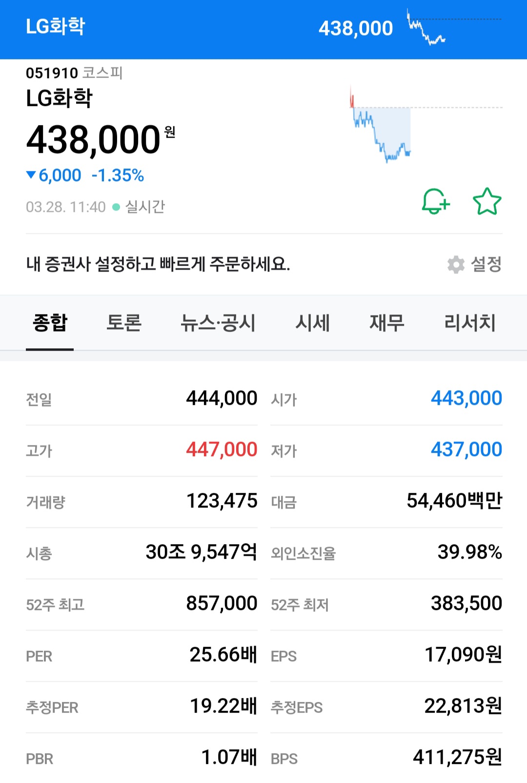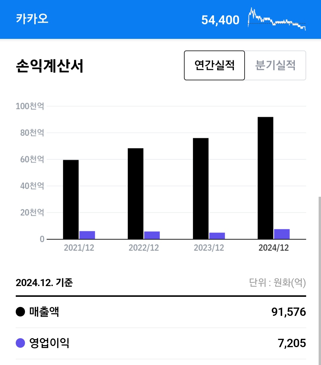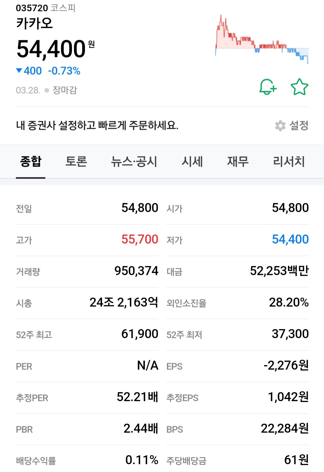 현재 54,400원에 주가를 형성하고 있습니다.