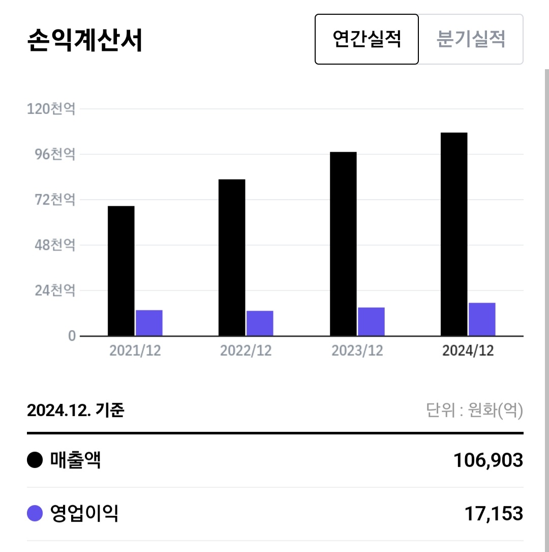 AI 같은 경우에도 신사업을 준비하고 있어 비용을 어떻게 적절히 분배해서 사용하는지에 대해서 증권가의 걱정이 많았으나 시장의 예상은 참 뛰 넘는 비용 통제를 정확히 잘 보여줘가지고 현재 추정PER가 그 평균 업계에 비해서 26배에서 27배로 평가받고 있습니다.