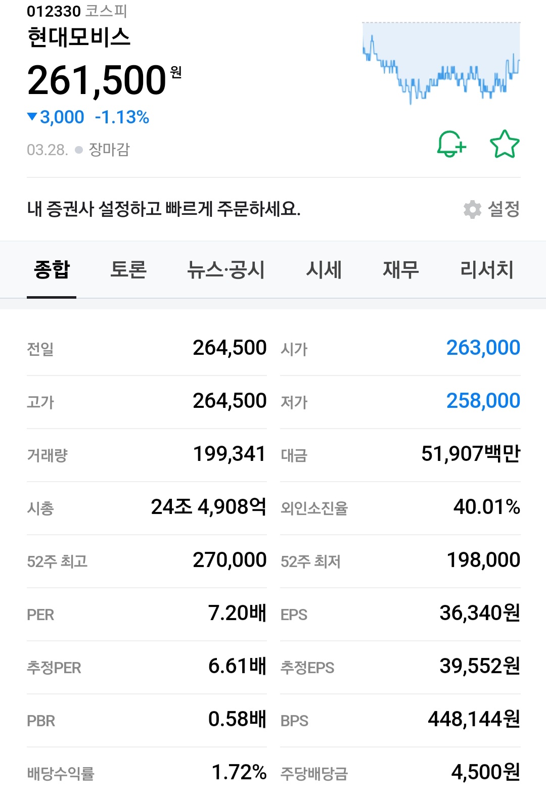 | 현대 모비스 주가 24년3월 (1) | 2024.03.29 |