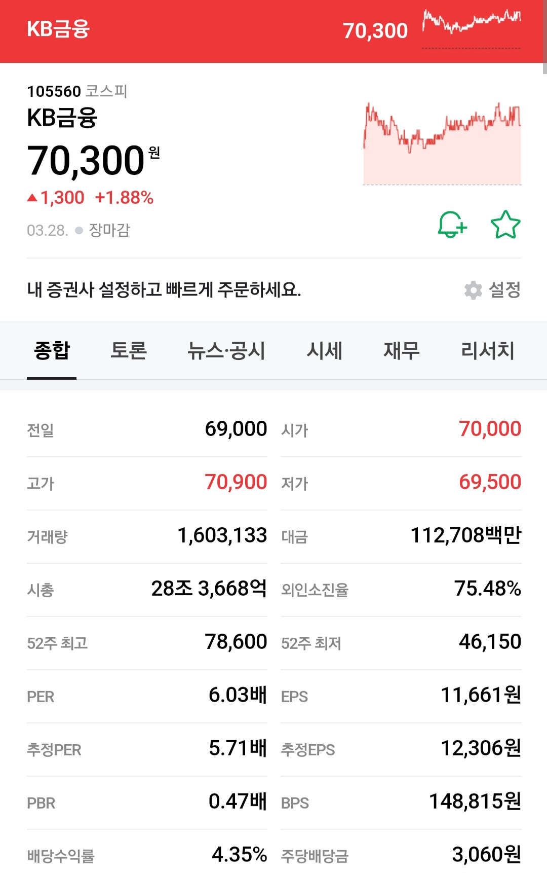 SK 증권 같은 경우는 현재 목표를 거의 7만 9000원 정도로 예측을 하고 있고 그리고 또 얼마 전에 그 카카오톡 메시지 전송과 비즈광고로 인해서 거래용 매출의 성장이 예상되고 24년에 이 거래형 매출에 대해서 11% 정도 상향된 수치를 볼 것이라고 예측을 하고 있습니다
