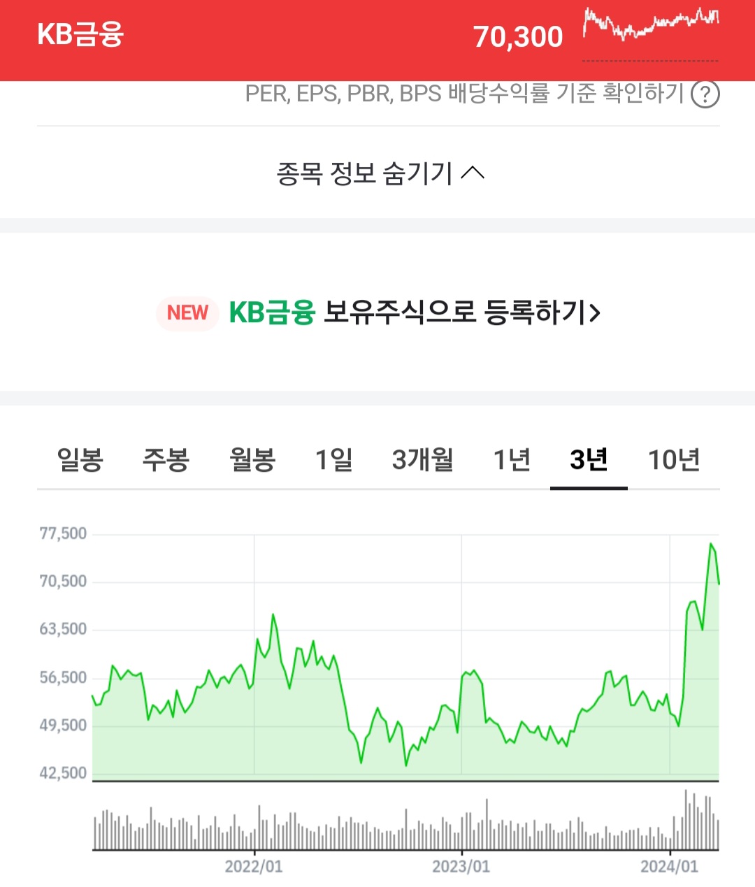 현재 3년 전에 매수했던 2022년도에 주가를