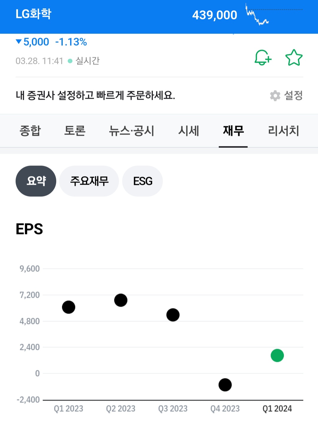 증권사들의 예상했던 컨세스의 반도 못 미치는 영업이익 정도라고. 이대서 많이 밀리게 된 것 같습니다. 지난 2023년 12월달부터 시작되어서 석유화학 자체의 식용 자체가 어렵다고 예측을 하고 있습니다.