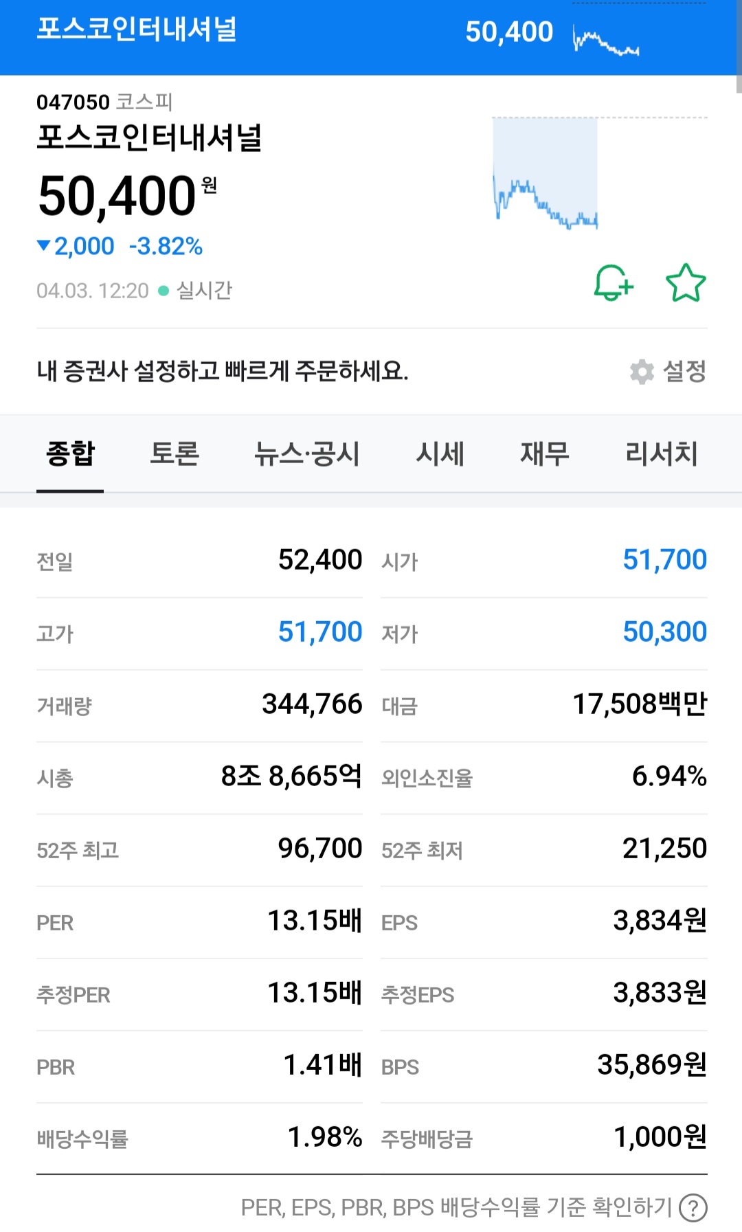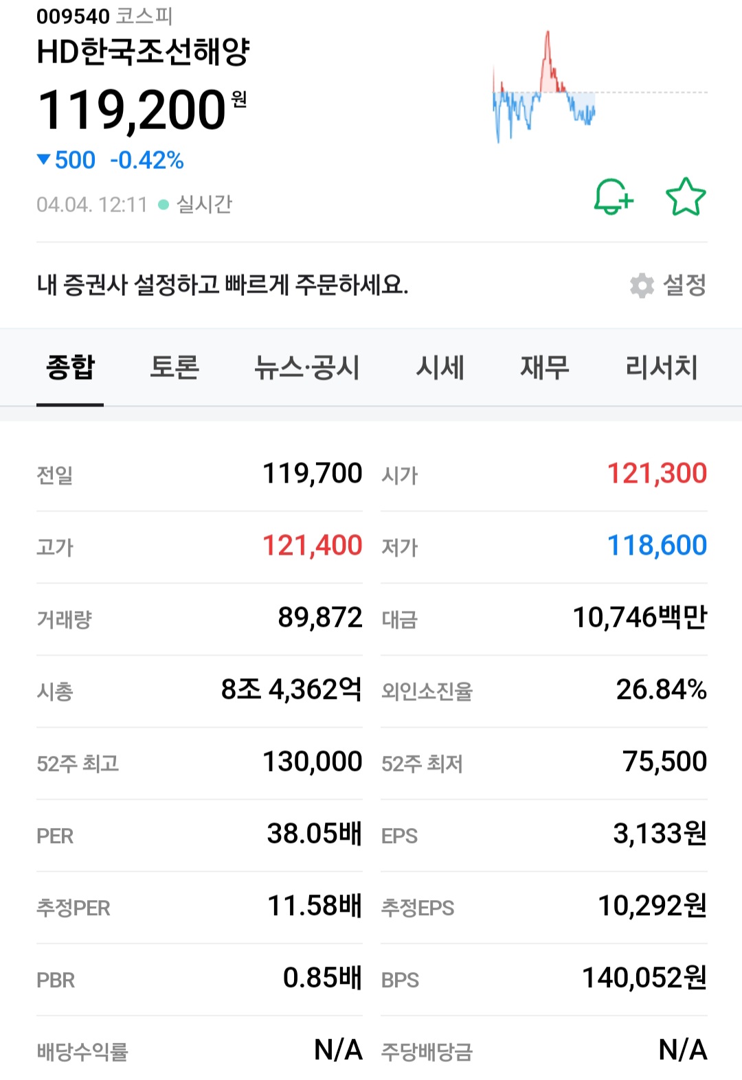 52주 최고가는 26,400원 정도 이고 PBR 같은 경우는 0.83배를 평가받고 있습니다.
