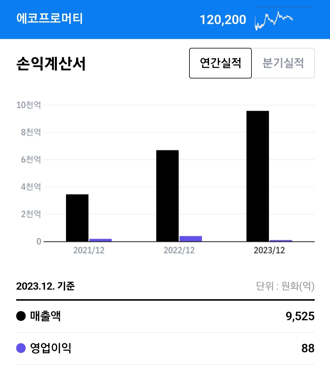 하지만 24년 별도 매출액을 봤을 때는 8.4% 이상 상승했고 영업이익기 3% 정도를 상승한 실적을 보고 보이고 있습니다.