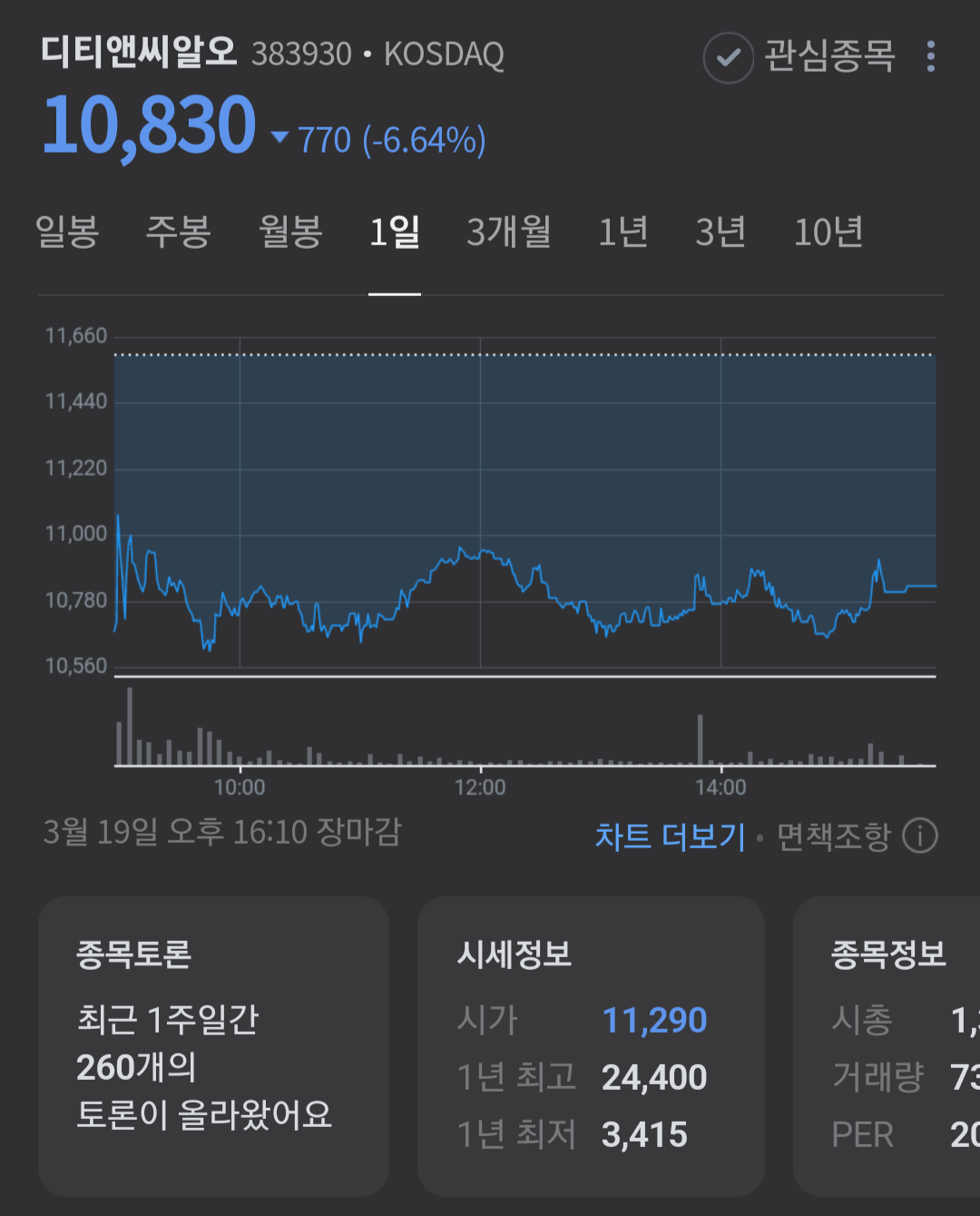 그리고 여섯번째로는 디티앤씨알오라는 코스닥 종목인데요. 이제이 주식은 현재 시가총액 1028억 정도로 올라와있고 이성규 이사가 현재 한동훈 비대위원장과 서울대 법대랑 로스쿨 동문이라는 이유로 한동훈님의 테마주로 엮였습니다.