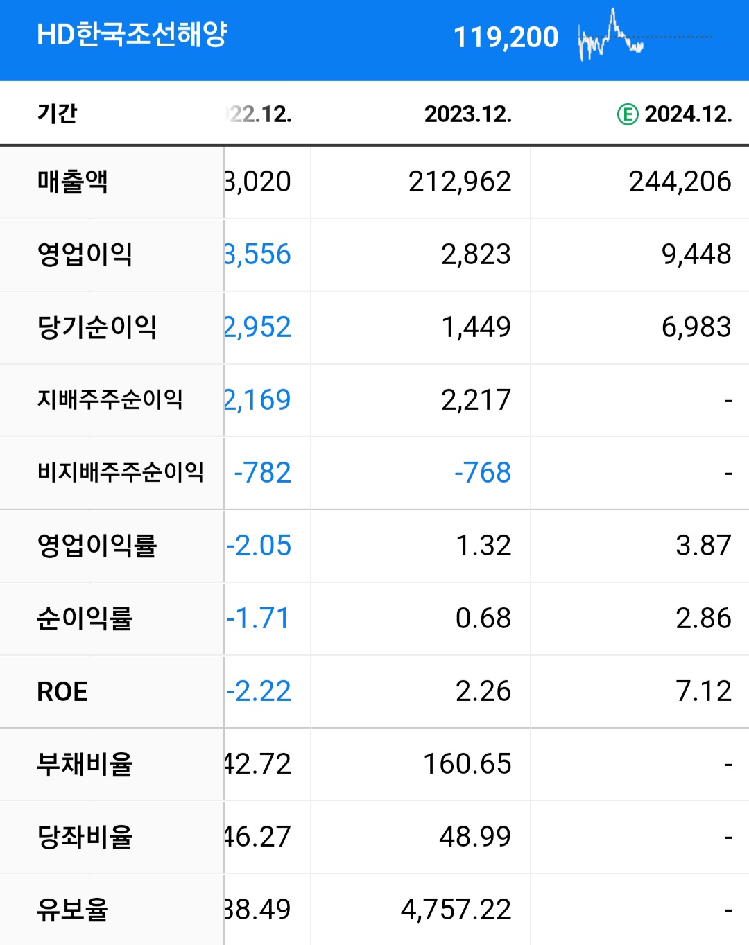 고가/ 건조 물량이 비중이 굉장히 많이 성하였고 영업이익 같은 경우 역시 굉장히 큰 폭으로 상승했기 때문에 아직 기대해볼 여지가 있다고 보는 것 같습니다.