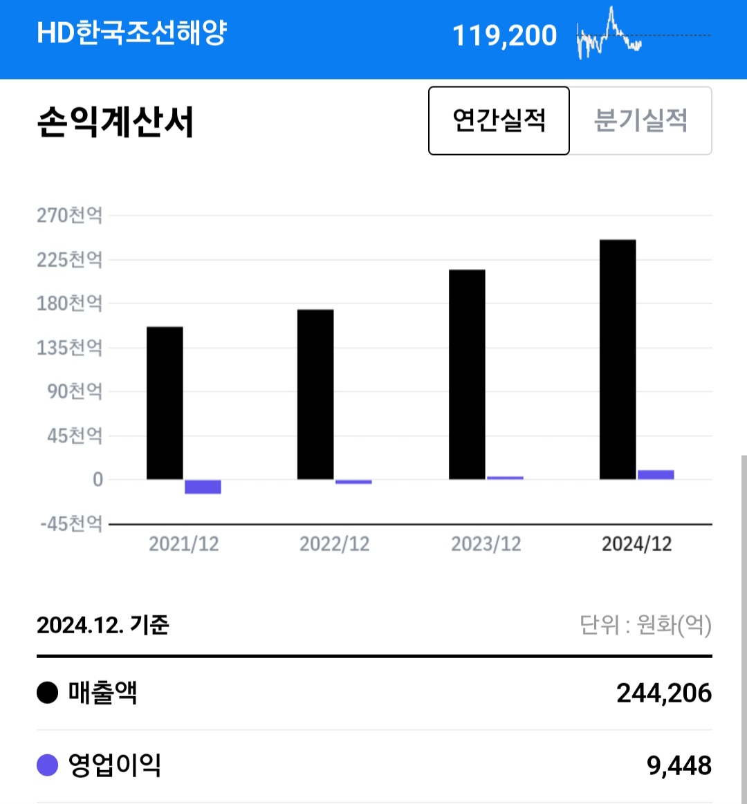 연결 매출을 보면은 현재 22년부터 하락세를 유지하다가 23년부터 흑자가 나기 시작했고 24년 현재 1조원단위의 영업이익하고 있는 걸로 보고 있습니다.